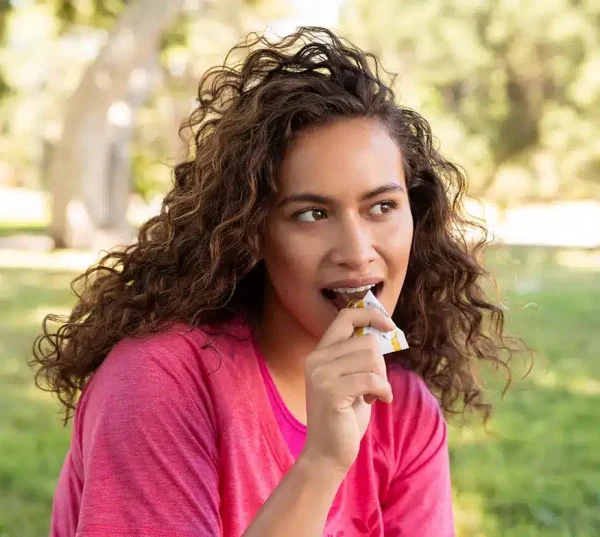 Συμπυκνωμένες Πρωτεΐνες Γάλακτος, σιρόπι γλυκόζης, σιρόπι φρουκτόζης, με επικάλυψη σοκολάτα γάλακτος (16,7 %) (ζάχαρη, βούτυρο κακάο, σκόνη γάλακτος, λικέρ κακάο,